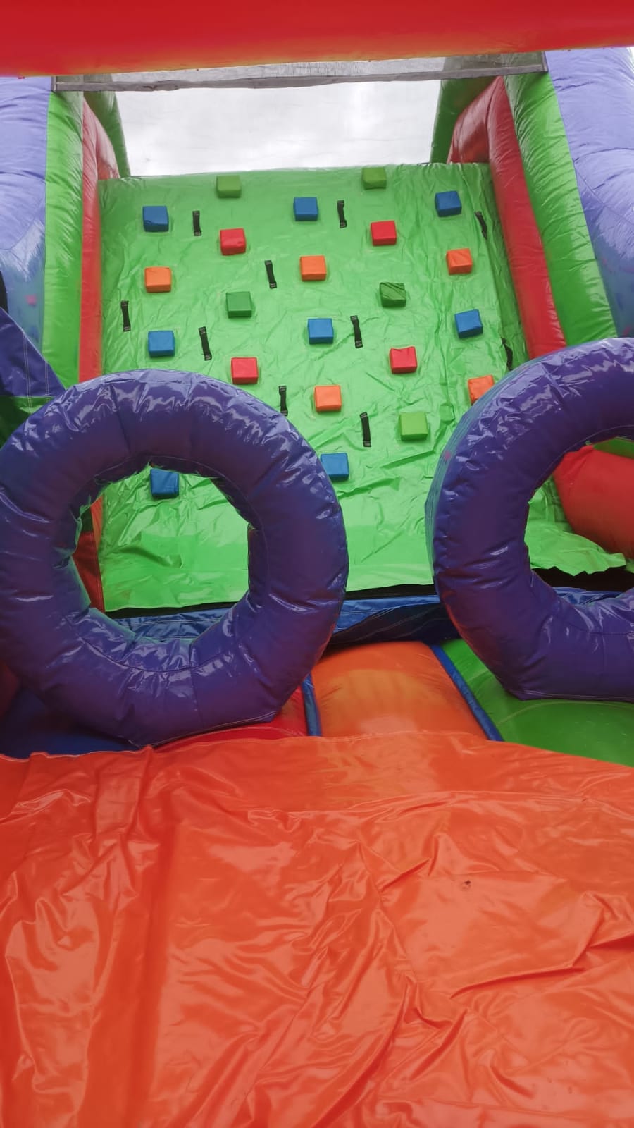 Our Eliminator obstacle course is a magical option for your kids to enjoy on their special day. This obstacle course has two arched entries at the rear that brings you through a series of obstacles before climbing the huge wall that leads to the slide at the other end.