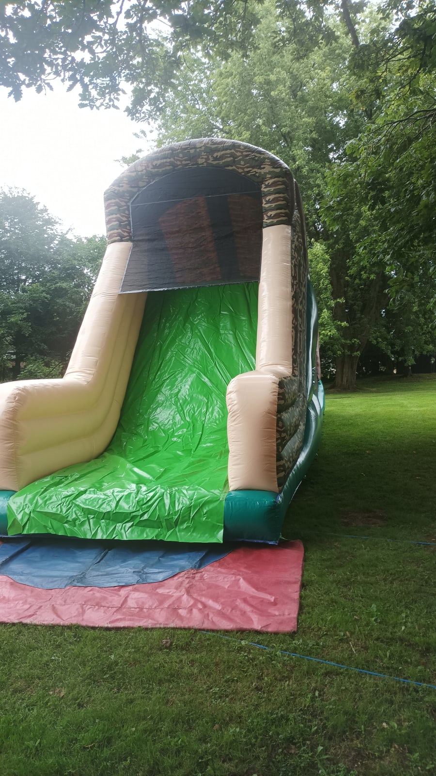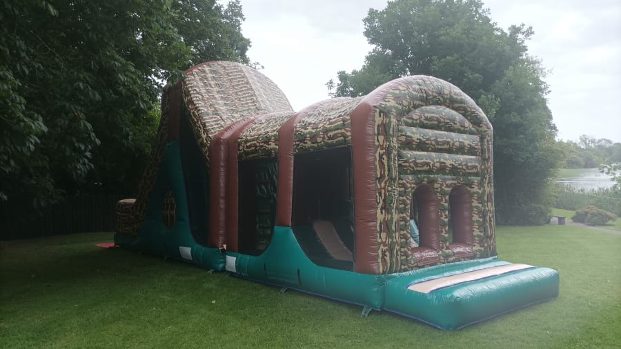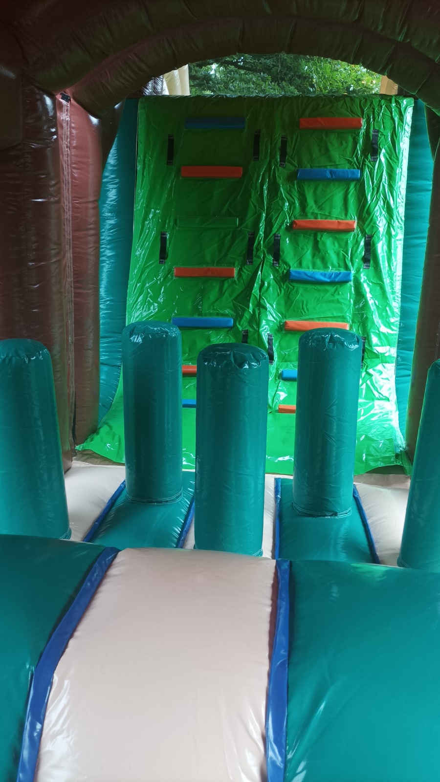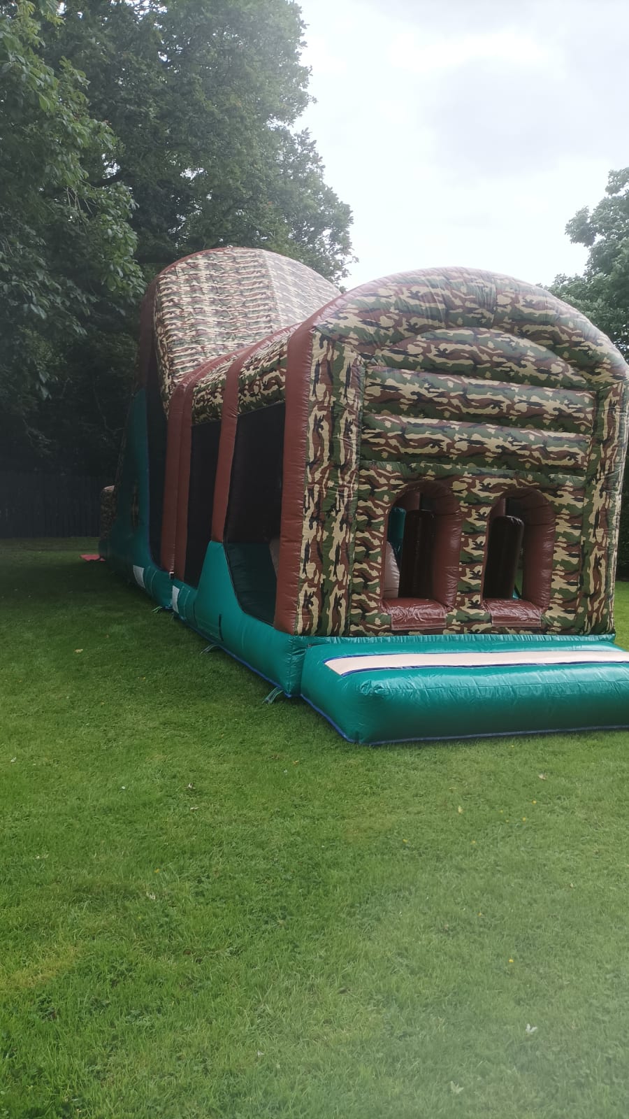 Our fantastic super size Army Boot Camp Obstacle Course is one for all the tough boys and girls . Enter the obstacle course through two openings on one end, weaving through a number of obstacles before taking on the climbing wall and sliding down the huge slide that brings you out the other end.