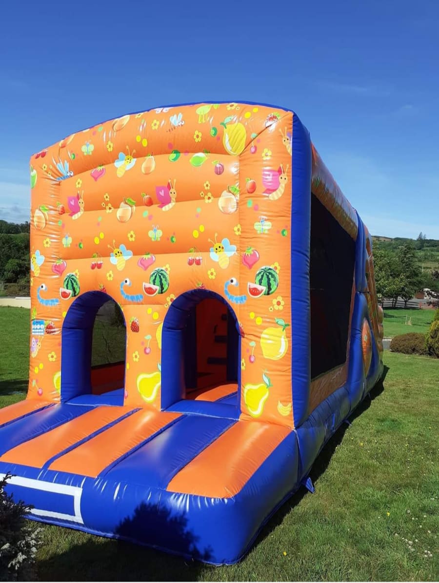 Our Tutti Frutti Obstacle Course is a fantastic option for a smaller garden. This inflatable is very colourful with prints of different types of fruit all over. It is fully enclosed with two arched entrances into the obstacle area. A climbing wall will lead you to the huge slide at the other end. Safe netting is on both sides offering a full view of everyone inside at all times.