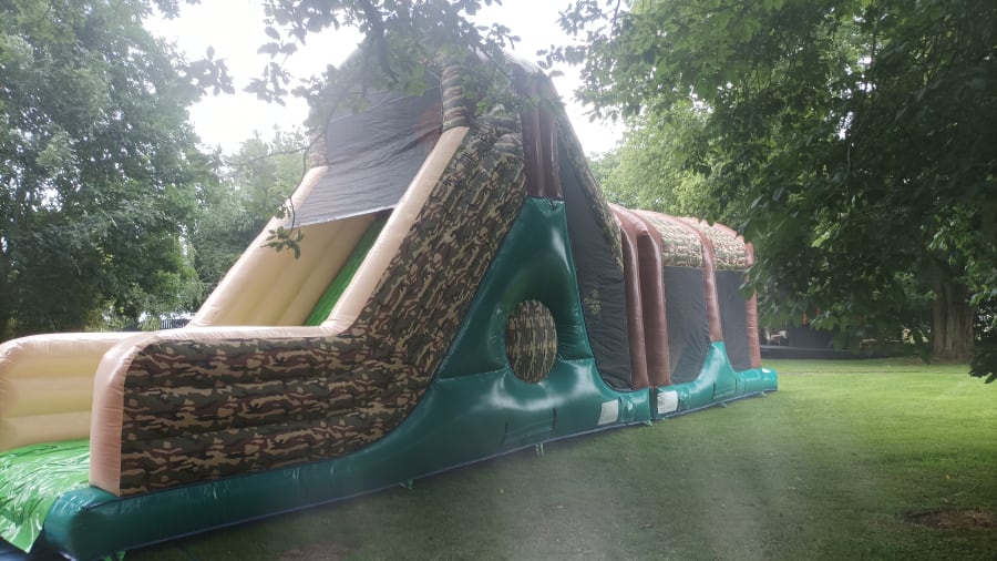 Our fantastic super size Army Boot Camp Obstacle Course is one for all the tough boys and girls . Enter the obstacle course through two openings on one end, weaving through a number of obstacles before taking on the climbing wall and sliding down the huge slide that brings you out the other end.